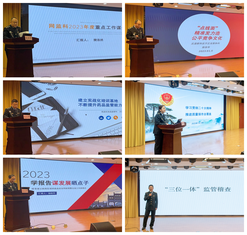1月14日,市市场监管局利用周六一天时间,举办“学报告、谋发展,晒点子、大家评”创新工作擂台赛,在新的一年里激发干部职工对标对表、聚力强势、奋勇争先的精气神,在全局营造比学赶超、敢拼敢抢敢作为的浓厚氛围,形成人人担当作为、科室协同共为、全局“追赶江浙、争先江淮”的生动局面。市局党组书记、局长高真理出席并讲话,市局党组成员、副局长徐明主持活动,其他局领导班子成员及市管干部出席活动,29个业务科室和部门的负责人参赛,机关全体干部职工、直属(派出)机构主要负责人共计160余人参加活动。